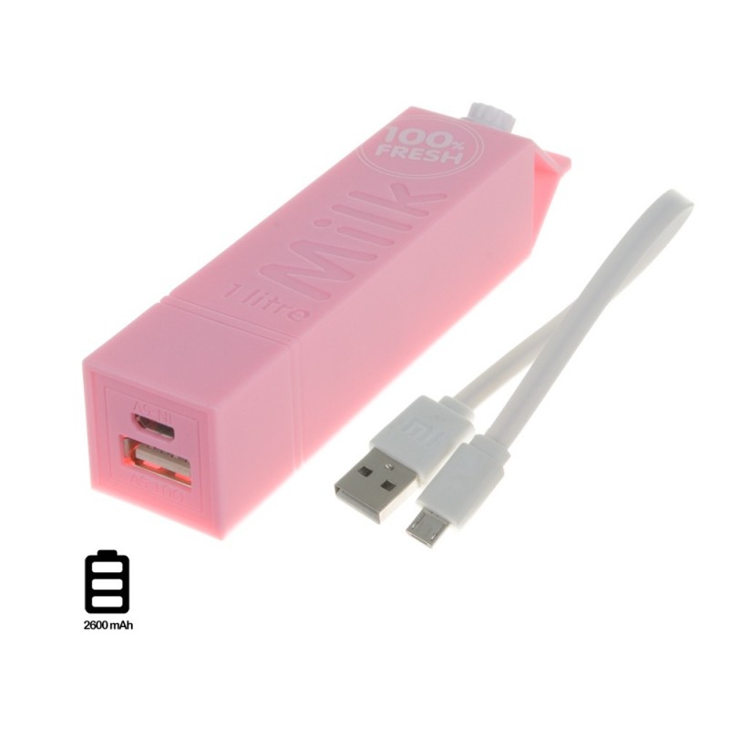 BATERÍA POWER MILK PORTABLE DISEÑO CAJA DE LECHE. 2600 mAh.