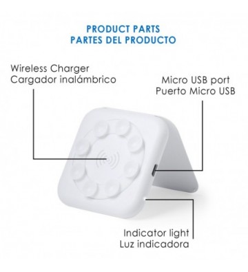 DAM.Cargador Sakrol Qi con ventosas de agarre y modo soporte. UNICA.6x6x1,2 cm. COLOR: Blanco.