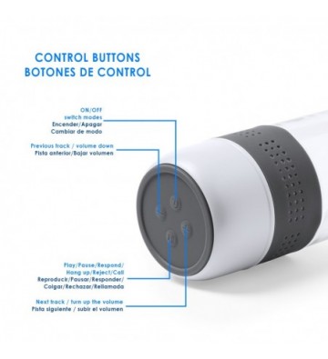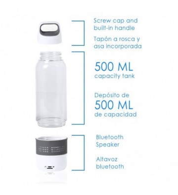 Bidón de 500ml de capacidad con altavoz bluetooth integrado en base.
