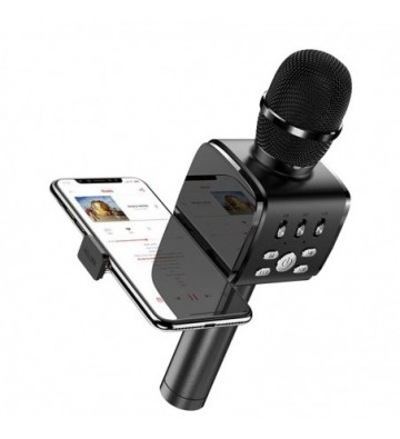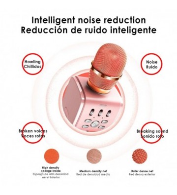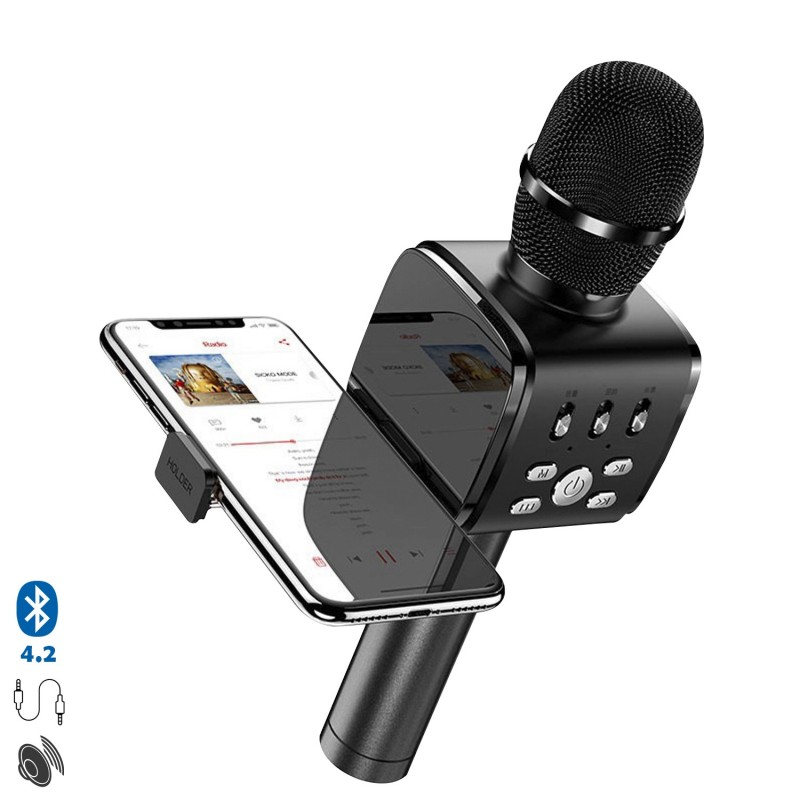 Micrófono para Karaoke con altavoz y soporte incorporado.
