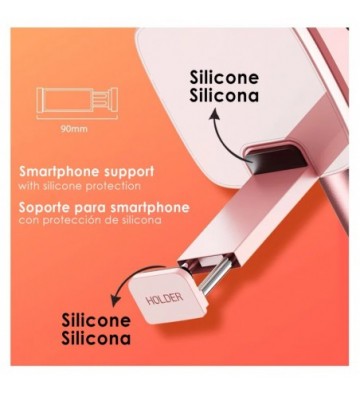 • Soporte para smartphone incorporado: para dispositivos de hasta 8.3cm de ancho. Plegable, queda totalmente oculto cuando no se utiliza.