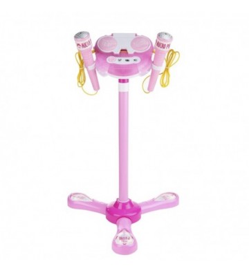 DAM. Kit karaoke infantil con 2 micrófonos y stand soporte..28x28x90 cm. COLOR: Rosa.