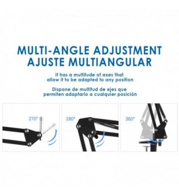 • Soporte que mantiene el micrófono estable con función de amortiguación. Particularmente bueno para voces en off de video; podcasts; Video de Youtube; conferencias de Skype, etc.