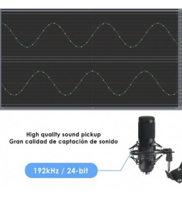 • Sonido profesional de alta calidad 192kHz / 24bit: este micrófono de condensador ha sido diseñado con un chipset de sonido profesional, con una frecuencia de muestreo de alta resolución de 192kHz / 24bit.