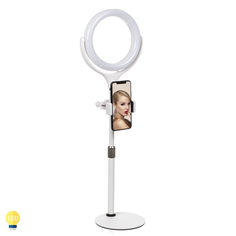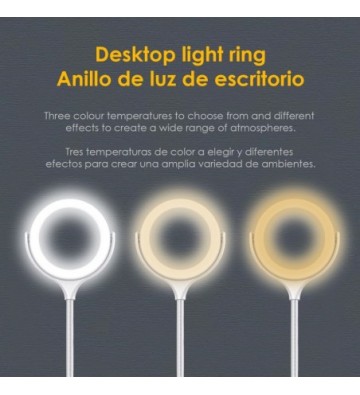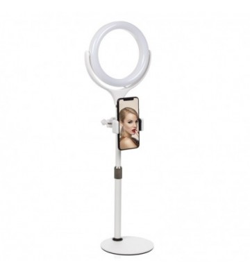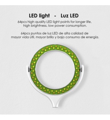 Anillo luz led estudio giratorio 360º de 7" (17,9 cms.) para grabación y selfies con Soporte smartphone de sobremesa con peana, control remoto.