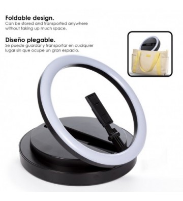 Anillo luz LED estudio de 11 4 pulgadas plegable y extensible con soporte smartphone. Modos iluminación y control remoto.