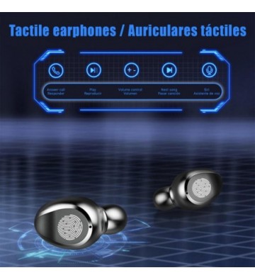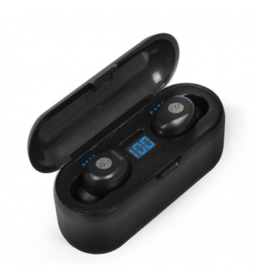 DAM.Auriculares TWS F9 Bluetooth 5.0 táctil con base de carga powerbank con indicador de carga interna y de auriculares. UNICA.9x3,5x4,7 cm. COLOR: Negro.