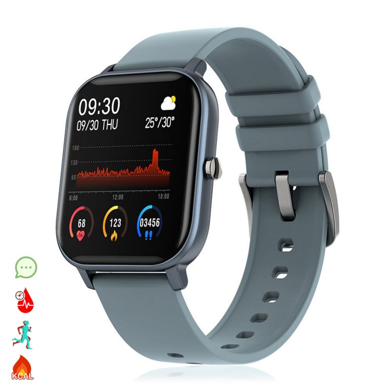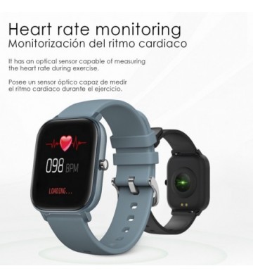 Smartwatch AK-P8 con monitorización de ritmo cardiaco presión sanguínea modo multideportivo y notificaciones.