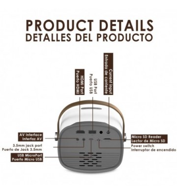 • Conexiones de entrada: HDMI, USB, AV (incluye cable), micro SD.