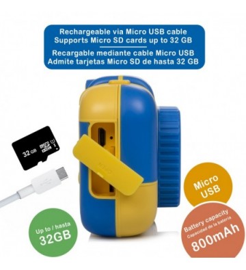 DAM.Cámara infantil L1 de fotos y video, con juegos incorporados. UNICA.8x2x4 cm. COLOR: Azul Amarillo.
