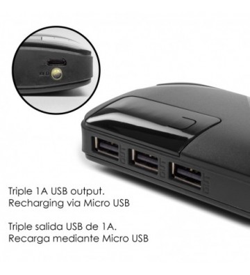DAM.Powerbank R8 de 26.000mAh con indicador de porcentaje de carga, triple salida USB de 1A. UNICA.14,4x2,4x6,4 cm. COLOR: Negro.