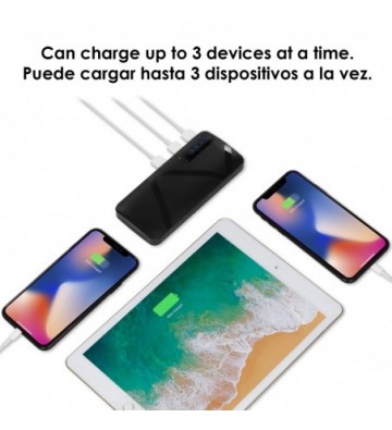 Powerbank R8 de 26.000mAh con indicador de porcentaje de carga triple salida USB de 1A.