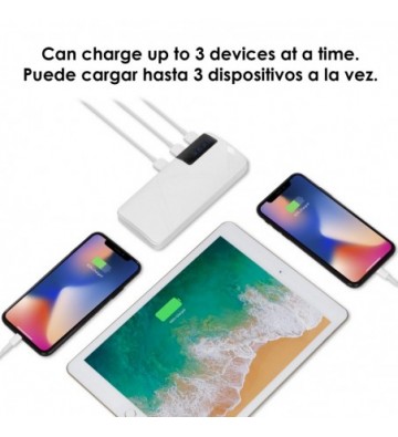 DAM.Powerbank R8 de 26.000mAh con indicador de porcentaje de carga, triple salida USB de 1A. UNICA.14,4x2,4x6,4 cm. COLOR: Blanco.