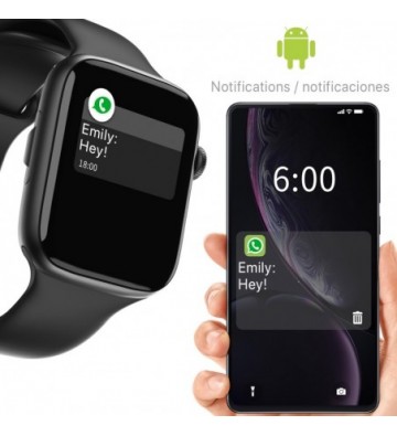 • Sincronización y aviso de notificaciones del teléfono, como email, Whatsapp, Facebook, Twitter, etc y SMS. Compatible con dispositivos Android mediante aplicación gratuita