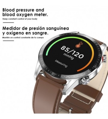 Smartwatch bluetooth L13 multifunción: Funciones: • Sincronización y aviso de notificaciones del teléfono, como email, Whatsapp, Facebook, Twitter, etc y SMS. Compatible con dispositivos Android e iOS mediante aplicación gratuita • Aviso de llamadas. • Control de los archivos MP3 de tu teléfono móvil. • Función de avisos mediante vibración. • Control remoto de la cámara del Smartphone. • Alarma, cronómetro, calculadora. • Control por gestos, mediante el giro de la muñeca. • Multi idiomas: con opción de sincronización automática del idioma del smartphone sincronizado. Incluye: español, inglés, francés, italiano, portugués, alemán, griego, turco, checo, etc. • Display intercambiable con hasta 10 diseños preinstalados, diseños inspirados en sus distintos usos: deportivos, día a día, para salir, etc. • Compatible con pulseras intercambiables con sistema “Quick-Easy” de 22mm. Funciones de salud: • Monitor cardíaco, con registro de pulsaciones, ECG. • Monitor de oxígeno en sangre. • Monitor de presión sanguínea. • Podómetro con contador de pasos, calorías quemadas y distancia recorrida. • Recordatorio de actividad (aviso de sedentarismo) con alarma. • Monitor de sueño, con indicador de tiempo y calidad. Chip: MTK2502 Pantalla: táctil, IPS 1.28 pulgadas Resolución: 240x240 Bluetooth: 4.0 Compatibilidad: iOS8.0 y Android 4.4 o superiores. Batería: 290mAh Autonomía: hasta 5días en uso, hasta 7 en reposo. Sellado: IP67 para uso diario, no sumergir. PVC Aleación_de_Metal