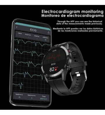DAM.Smartwatch L13 pulsera de silicona con modo multideportivo, monitor cardiaco, tensión y O2 en sangre. UNICA.4,6x1,2x5,3 cm. COLOR: Negro.