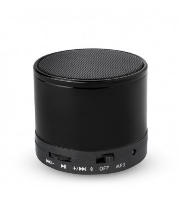 Compacto altavoz de conexión Bluetooth®. De diseño bicolor con suave acabado y conexión Bluetooth® 3.0, ofrece 3W de potencia, tiene función de manos libres, una ranura para tarjetas mini SD de hasta 64 GB de capacidad, función radio FM, entrada auxiliar de línea mediante conexión jack de 3,5mm y soportes de goma antideslizantes en la base. Compatible con iOS y Android, incluye cable de carga mini USB, cable auxiliar jack de 3,5mm y viene presentado en atractiva caja de diseño. Potencia: 3W Bluetooth: 3.0 PVC y aleación de metal