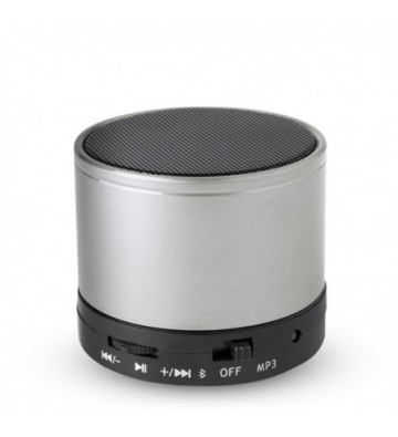 Compacto altavoz de conexión Bluetooth®. De diseño bicolor con suave acabado y conexión Bluetooth® 3.0, ofrece 3W de potencia, tiene función de manos libres, una ranura para tarjetas mini SD de hasta 64 GB de capacidad, función radio FM, entrada auxiliar de línea mediante conexión jack de 3,5mm y soportes de goma antideslizantes en la base. Compatible con iOS y Android, incluye cable de carga mini USB, cable auxiliar jack de 3,5mm y viene presentado en atractiva caja de diseño. Potencia: 3W Bluetooth: 3.0 PVC y aleación de metal