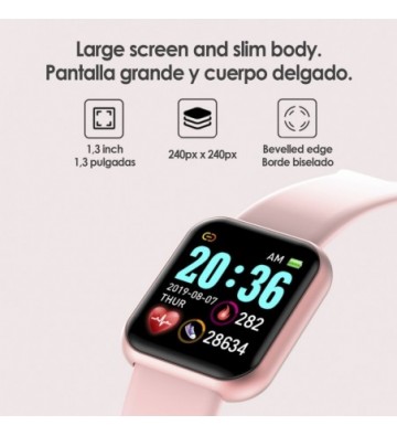 Brazalete inteligente AK-Y68 con monitor cardiaco y presión sanguínea. Funciones: • Aviso de notificaciones de aplicaciones tipo Whatsapp, Facebook, Wechat, etc. y mensajes SMS; con muestra de mensajes. • Avisos de llamadas entrantes. • Control remoto de la cámara del smartphone. • Encendido de pantalla al levantar la muñeca. • Idiomas soportados APP: español, italiano, chino, inglés, francés, portugués, holandés, alemán, ruso. Funciones de salud: • Monitor cardíaco, monitor de presión sanguínea. • Podómetro con medición de pasos, estimación de calorías, distancia recorrida. • Modo multi deportivo: correr, flexiones y saltos a la comba. • Aviso de sedentarismo. • Monitor de sueño con medición de tiempo y calidad. Pantalla: 1.3 pulgadas IPS, 240x240 píxeles de resolución Bluetooth: 4.0 Batería: 100mAh Sellado: IP67 Memoria: 16KB + 128KB Cargador incorporado en el cuerpo del reloj. Adaptador de corriente no incluido. PVC y aleación de metal