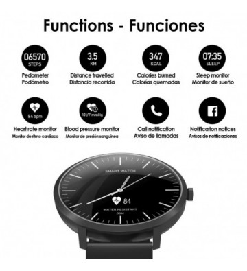 • Búsqueda del reloj mediante vibración (a través de app).