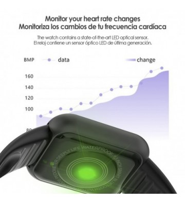 Brazalete inteligente AK-Y68 con monitor cardiaco y presión sanguínea.