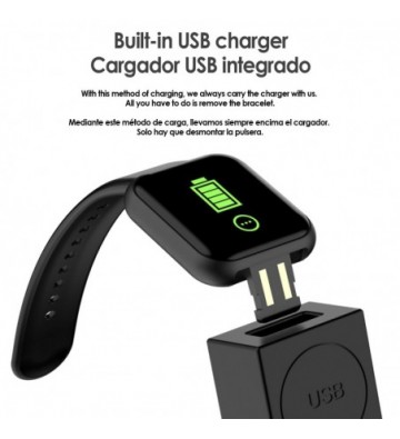 Cargador incorporado en el cuerpo del reloj. Adaptador de corriente no incluido.