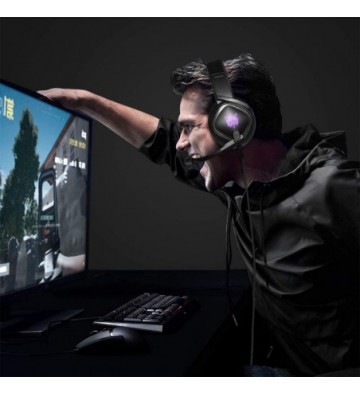 • Luz LED única: luces LED brillantes en los cascos de las orejeras destacan la atmósfera del juego.