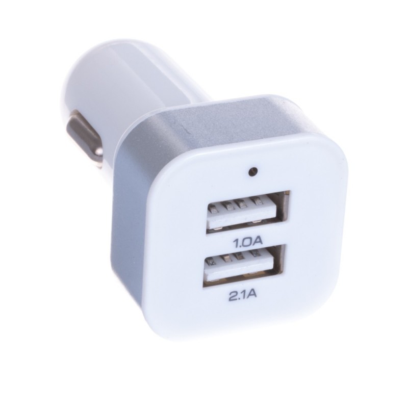 ADAPTADOR CON DOBLE CARGA USB PARA AUTOMÓVIL SALIDA DE 1.0A Y2.1A. VOLTAJE DE ENTRADA : DC 5V. SALIDA: 1.0A Y 2.1A. PVC Aleación_de_Metal