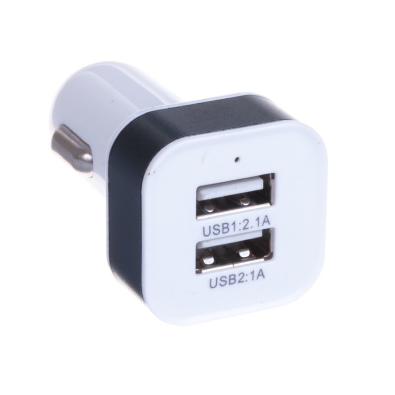 ADAPTADOR CON DOBLE CARGA USB PARA AUTOMÓVIL SALIDA DE 1.0A Y2.1A. VOLTAJE DE ENTRADA : DC 5V. SALIDA: 1.0A Y 2.1A. PVC Aleación_de_Metal