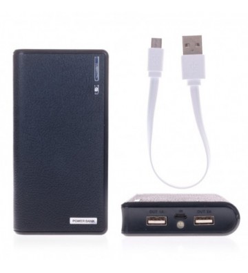 Powerbank de alta capacidad, con doble salida USB de 1A y 2A. Especialmente diseñado para utilizar con smartphones y tablets, así como otros dispositivos con carga mediante USB/micro USB, lightning, tipo C, etc. Incluye cable de carga USB a micro USB. Capacidad de la batería : 20.000mAh. Entrada: 5V/1A. Doble salida USB de 1A y 2 A PVC Aleación_de_Metal