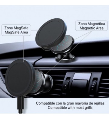 • Soporte para rejilla de coche, compatible con Magsafe estándar para iPhone 12 Series.