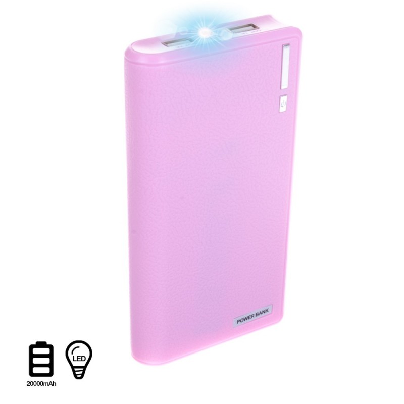 DAM.POWERBANK 20000mAh LINTERNA. doble USB 20000 mAh UNICA.7,8x2,2x15,1 cm. COLOR: Rosa .
