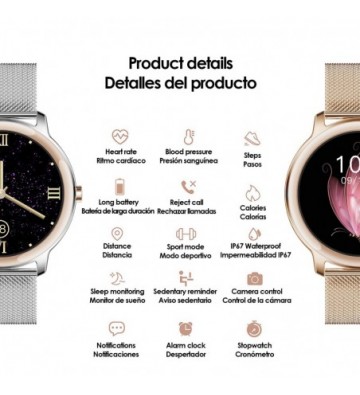 Smartwatch R18 con monitor cardiaco dinámico, tensión, oxígeno en sangre y notificaciones: • Aviso de llamas con posibilidad de rechazar. • Notificaciones de SMS y aplicaciones Push, tipo Whatsapp, Facebook, Twitter, etc. • Control de la música del smartphone. • Dial personalizable. • Encendido de pantalla automático al levantar la muñeca. • Anti pérdida. • Otras funciones como: despertador, alarma. • Lenguajes soportados: alemán, japonés, inglés, francés, italiano, español, ruso, portugués, polaco, malayo. Funciones de salud: • Ritmo cardíaco dinámico, presión sanguínea, oxígeno en la sangre • Monitoreo del sueño • Registro deportivo (podómetro, quema de calorías, kilometraje) • Recordatorio de actividad. Pantalla: 1.1 pulgadas IPS 240*240 Chip: Nordic 52832 Sensor de movimiento: SC7A20 Sensor cardiaco: HRS3300 Batería: 150mAh Duración: 5 días en uso normal, hasta 30 en reposo. Memoria: 512kb+64kb Bluetooth: 5.0 Compatible: Android 4.4 y superior, IOS 8.2 y superior Aplicación: Qwatch PVC y aleación de metal