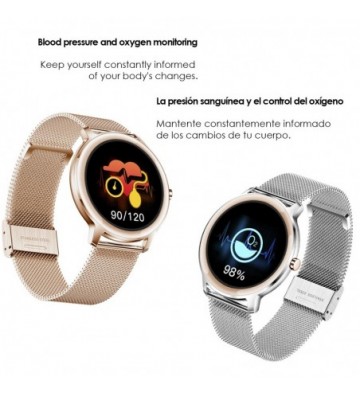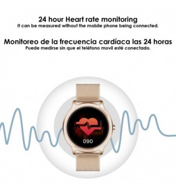 Smartwatch R18 con monitor cardiaco dinámico tensión oxígeno en sangre y notificaciones.