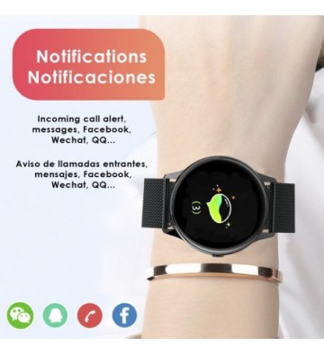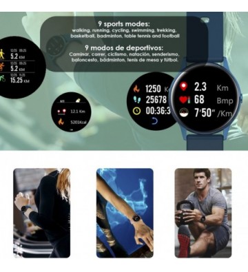 • Modo multideporte, con medición de pasos, calorías, etc. Incluye modods: andar, correr, ciclismo, natación, baloncesto, bádminton, tenis de mesa, fútbol.