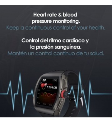 Smartwatch M11 con tensión, oxígeno en sangre y 10 modos multideportivos: • Aviso de llamadas entrantes y SMS. • Notificaciones de aplicaciones tipo push, como Whatsapp, Facebook, Twitter, etc. • Alarma. • Cronómetro y cuenta atrás. • Control remoto de la música del smartphone. • Búsqueda del smartwatch. • Luz de la pantalla automática. • Disparador remoto. Funciones de salud: • Monitor de ritmo cardíaco y presión sanguínea. Modo de detección 24 horas. • Monitor de ciclos menstruales femeninos. • Podómetro con contador de pasos, calorías y distancia. • Modo multideporte: correr, andar, correr en interior, andar en interior, ciclismo, bici estática, andar en máquina, elíptica, senderismo y remo. • Monitor de sueño, con indicador de tiempo y calidad. • Aviso de sedentarismo. Pantalla totalmente táctil, 1.4 pulgadas full HD IPS a color. Resolución 240x240. Compatibilidad: Android 4.4e iOS 8.0 y superiores. Bluetooth: 4.0 Chip: NRF52832 Chip PPG: Everlight PD70 Batería: 200mAh Carga magnética. Vibración: si Sellado: IP68 Idiomas de la app: español, inglés, italiano, francés, alemán, portugués, polaco, ruso, chino, japonés. PVC y aleación de metal