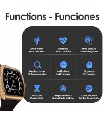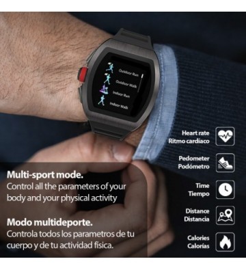 Smartwatch M11 con tensión, oxígeno en sangre y 10 modos multideportivos: • Aviso de llamadas entrantes y SMS. • Notificaciones de aplicaciones tipo push, como Whatsapp, Facebook, Twitter, etc. • Alarma. • Cronómetro y cuenta atrás. • Control remoto de la música del smartphone. • Búsqueda del smartwatch. • Luz de la pantalla automática. • Disparador remoto. Funciones de salud: • Monitor de ritmo cardíaco y presión sanguínea. Modo de detección 24 horas. • Monitor de ciclos menstruales femeninos. • Podómetro con contador de pasos, calorías y distancia. • Modo multideporte: correr, andar, correr en interior, andar en interior, ciclismo, bici estática, andar en máquina, elíptica, senderismo y remo. • Monitor de sueño, con indicador de tiempo y calidad. • Aviso de sedentarismo. Pantalla totalmente táctil, 1.4 pulgadas full HD IPS a color. Resolución 240x240. Compatibilidad: Android 4.4e iOS 8.0 y superiores. Bluetooth: 4.0 Chip: NRF52832 Chip PPG: Everlight PD70 Batería: 200mAh Carga magnética. Vibración: si Sellado: IP68 Idiomas de la app: español, inglés, italiano, francés, alemán, portugués, polaco, ruso, chino, japonés. PVC y aleación de metal