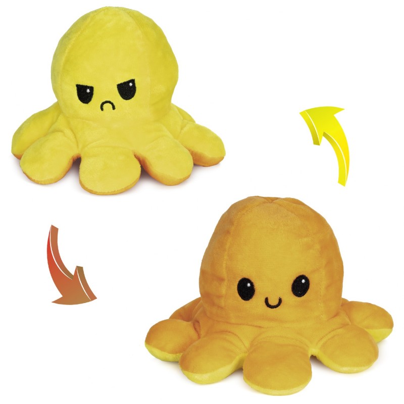 • Pulpo reversible de peluche, blandito y suave, con 2 caras, le proporciona diferentes experiencias visuales y sensoriales. • Este peluche de diseño único se puede voltear fácilmente, cambiando el color y su expresión facial de contento a enfadado o triste. • Facilita la comunicación de las emociones en los pequeños que padecen de autismo, síndrome de asperger o TDAH. También es útil para los niños que sufren trastornos del lenguaje. • El producto es seguro para los más pequeños de la casa (recomendamos utilizar bajo supervisión de un adulto), está hecho de material de felpa duradero y está relleno con material de algodón PP de alta calidad. • Fácil de limpiar, use una pequeña cantidad de jabón y agua para eliminar las manchas y secar de forma natural. Fabricado en 100% poliéster. Siempre recomendamos utilizarlo bajo la supervisión de un adulto. No recomendado para menores de 3 años. Lavar a mano, máximo 40°C. No planchar. Mantener alejado de fuentes de calor y del fuego. Los colores pueden sufrir ligeras variaciones. La posición de la cara (Contento / enfadado) en referencia al color, puede variar. Poliéster