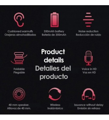 • Diadema plegable: podrás transportarlos cómodamente al plegarlos. Diadema acabada en goma en la zona de apoyo de la cabeza, mayores periodos de uso y alta comodidad. Áreas laterales extensibles.