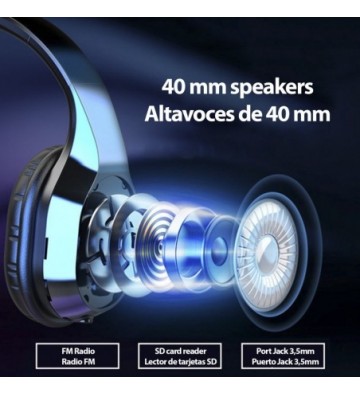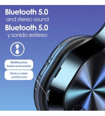 Cascos T5 Bluetooth 5.0, con manos libres, radio FM y lector micro SD: