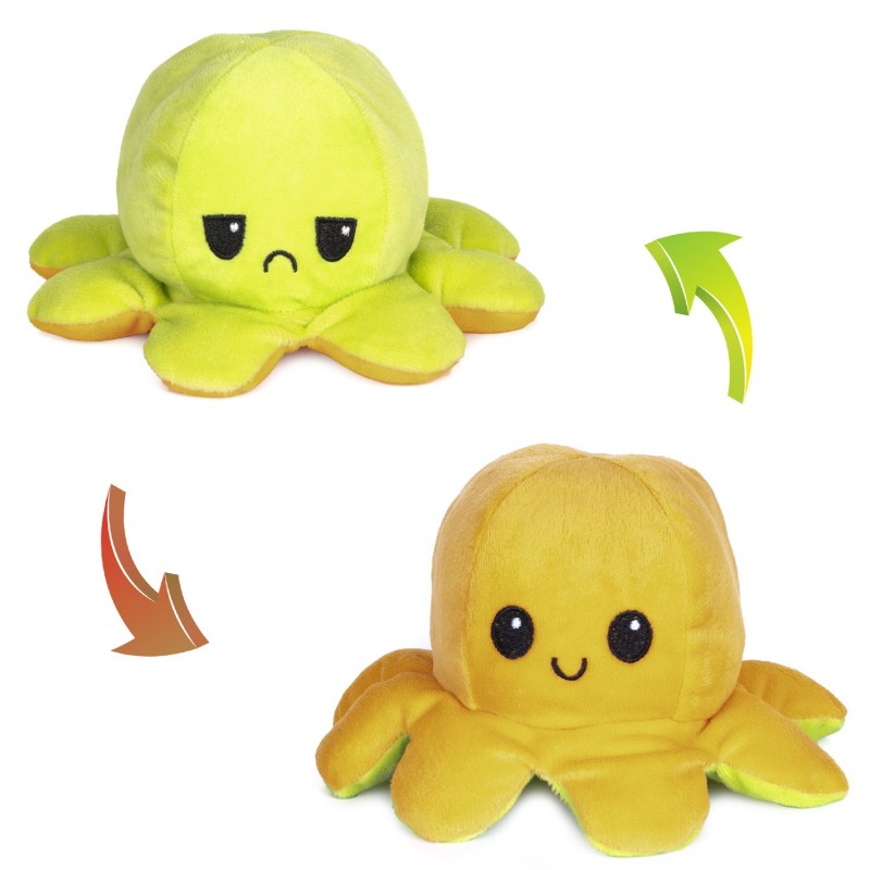 • Pulpo reversible de peluche, blandito y suave, con 2 caras, le proporciona diferentes experiencias visuales y sensoriales. • Este peluche de diseño único se puede voltear fácilmente, cambiando el color y su expresión facial de contento a enfadado o triste. • Facilita la comunicación de las emociones en los pequeños que padecen de autismo, síndrome de asperger o TDAH. También es útil para los niños que sufren trastornos del lenguaje. • El producto es seguro para los más pequeños de la casa (recomendamos utilizar bajo supervisión de un adulto), está hecho de material de felpa duradero y está relleno con material de algodón PP de alta calidad. • Fácil de limpiar, use una pequeña cantidad de jabón y agua para eliminar las manchas y secar de forma natural. Fabricado en 100% poliéster. Siempre recomendamos utilizarlo bajo la supervisión de un adulto. No recomendado para menores de 3 años. Lavar a mano, máximo 40°C. No planchar. Mantener alejado de fuentes de calor y del fuego. Los colores pueden sufrir ligeras variaciones. La posición de la cara (Contento / enfadado) en referencia al color, puede variar Poliéster