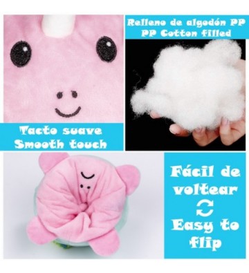 • Unicornio reversible de peluche, blandito y suave, con 2 caras, le proporciona diferentes experiencias visuales y sensoriales. • Este peluche de diseño único se puede voltear fácilmente, cambiando el color y su expresión facial de contento a enfadado o triste. • Facilita la comunicación de las emociones en los pequeños que padecen de autismo, síndrome de asperger o TDAH. También es útil para los niños que sufren trastornos del lenguaje. • El producto es seguro para los más pequeños de la casa (recomendamos utilizar bajo supervisión de un adulto), está hecho de material de felpa duradero y está relleno con material de algodón PP de alta calidad. • Fácil de limpiar, use una pequeña cantidad de jabón y agua para eliminar las manchas y secar de forma natural. Fabricado en 100% poliéster. Siempre recomendamos utilizarlo bajo la supervisión de un adulto. No recomendado para menores de 3 años. Lavar a mano, máximo 40°C. No planchar. Mantener alejado de fuentes de calor y del fuego. Los colores pueden sufrir ligeras variaciones. La posición de la cara (Contento / enfadado) en referencia al color, puede variar. Poliéster