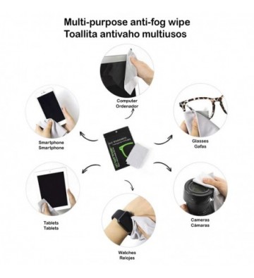 • Antivaho: Si limpia sus gafas o cualquier lente con el paño antivaho evitará que los cristales se empañen.