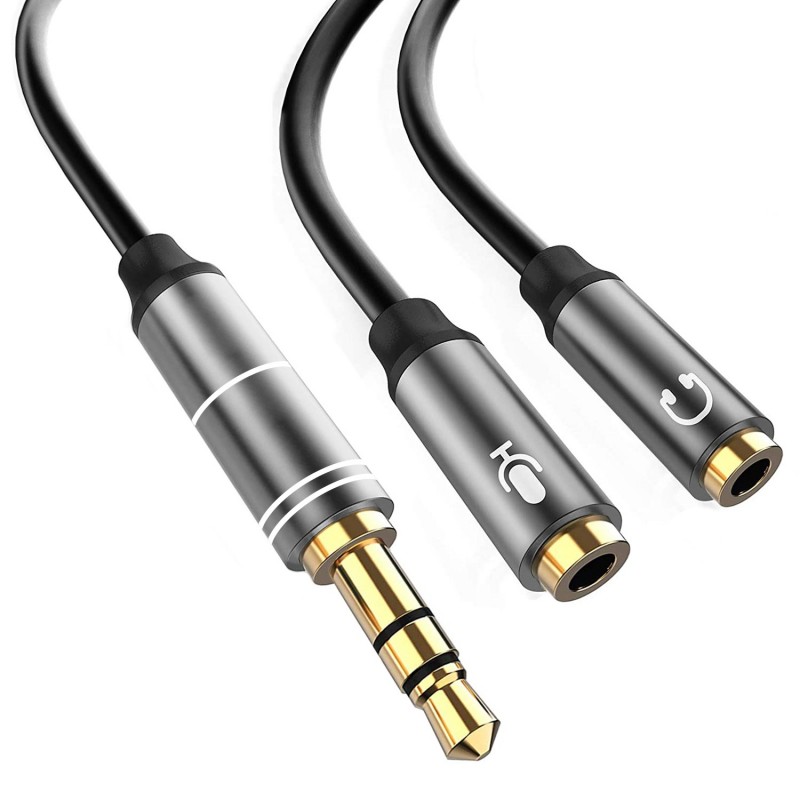 Splitter conversor de doble minijack hembra (micrófono y altavoz) a minijack macho