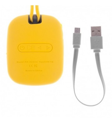 ALTAVOZ PORTÁTIL BLUETOOTH, CON FUNCIÓN MANOS LIBRES Y RADIO FM, CON COBERTURA DE SILICONA Y CORDÓN PARA COLGAR DE 39,5CM. LECTOR DE TARJETA MICRO SD. INCLUYE CABLE PLANO MICRO USB PARA CARGA.
