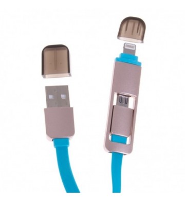 DAM.Cable 2 en 1. Micro USB Lightning 8 Pins iOS + Android UNICA.100x1,4x0,5 cm. COLOR: Azul .