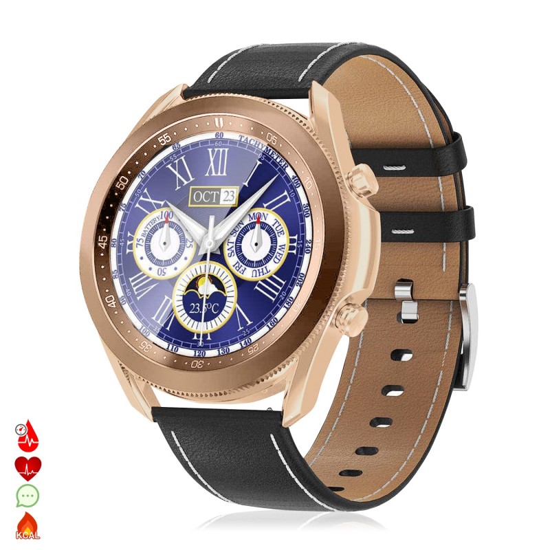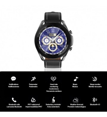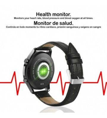 Smartwatch W3 con monitor de oxígeno en sangre, 5 modos deportivos, notificaciones con mensaje en pantalla. Correa de piel.