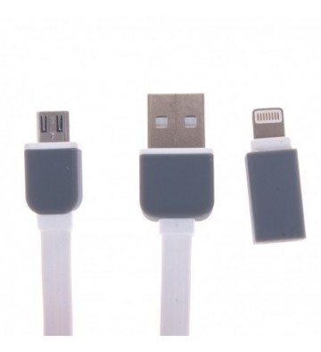 CABLE USB 2.0 PLANO EXTENSIBLE HASTA 1 METRO CON CONEXIÓN MICRO USB Y ADAPTADOR PARA CONEXIÓN LIGHTNING (IPHONE5/6/6P) USB 2.0 PVC Aleación_de_Metal