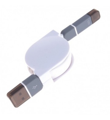 DAM.Cable enrollable 2 en 1. Micro USB Lightning 8 Pins iOS + Android UNICA.4x1,8x12 cm. COLOR: Blanco .