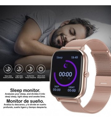 Smartwatch DT35+ con pulsera de acero. Notificaciones en pantalla iOS y Android.